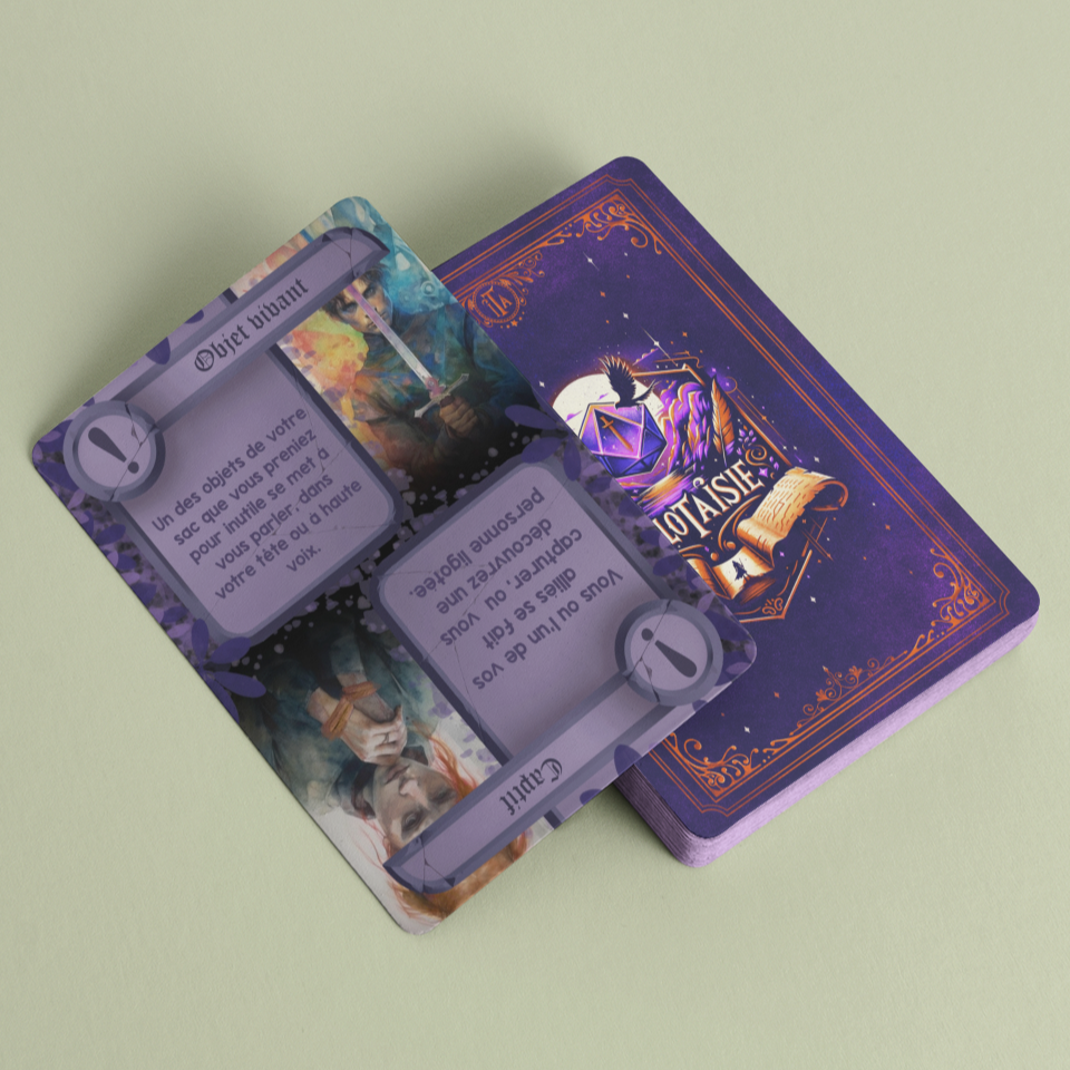 Passionnée de jeux de rôle en solo et de créations manuelles, j'ai souhaité combiner mes loisirs pour vous proposer des produits artisanaux, fabriqués en France pour accompagner vos loisirs et rendre vos séances vraiment uniques. Alliant mon expérience de graphiste illustratrice avec les intelligences artificielles, je vous propose de découvrir un univers magique au travers de mes créations.