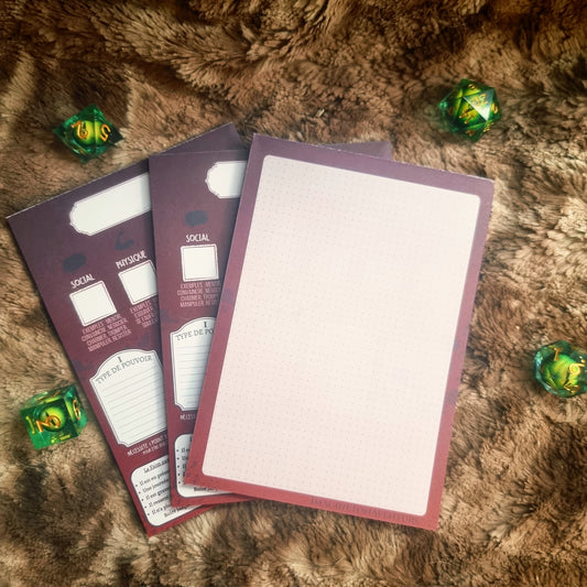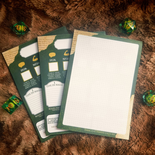 Passionnée de jeux de rôle en solo et de créations manuelles, j'ai souhaité combiner mes loisirs pour vous proposer des produits artisanaux, fabriqués en France pour accompagner vos loisirs et rendre vos séances vraiment uniques. Alliant mon expérience de graphiste illustratrice avec les intelligences artificielles, je vous propose de découvrir un univers magique au travers de mes créations.