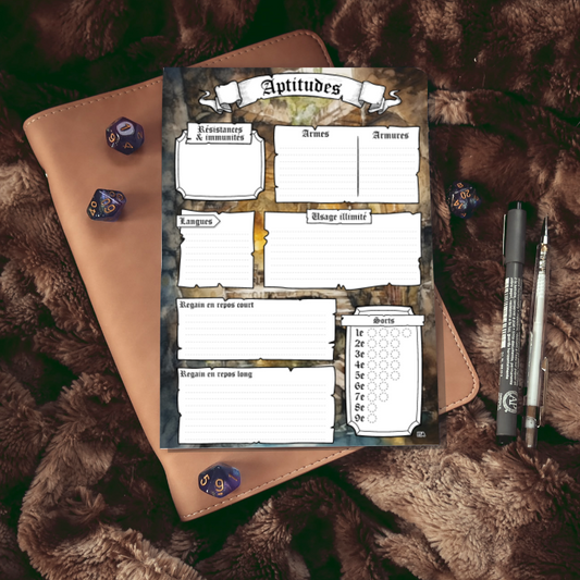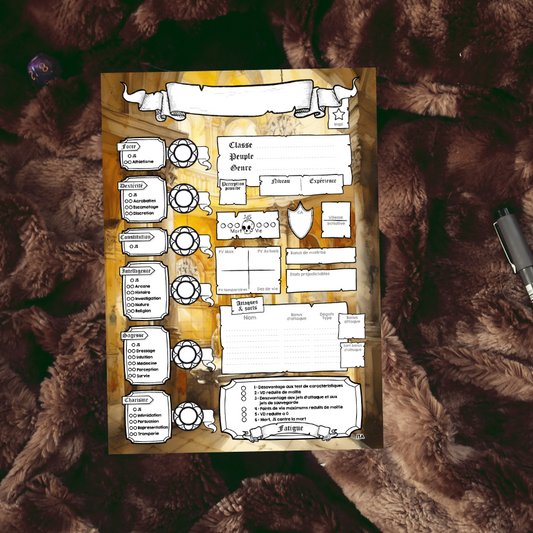Fiches personnages DD5 Digital Neutre Gribouillis