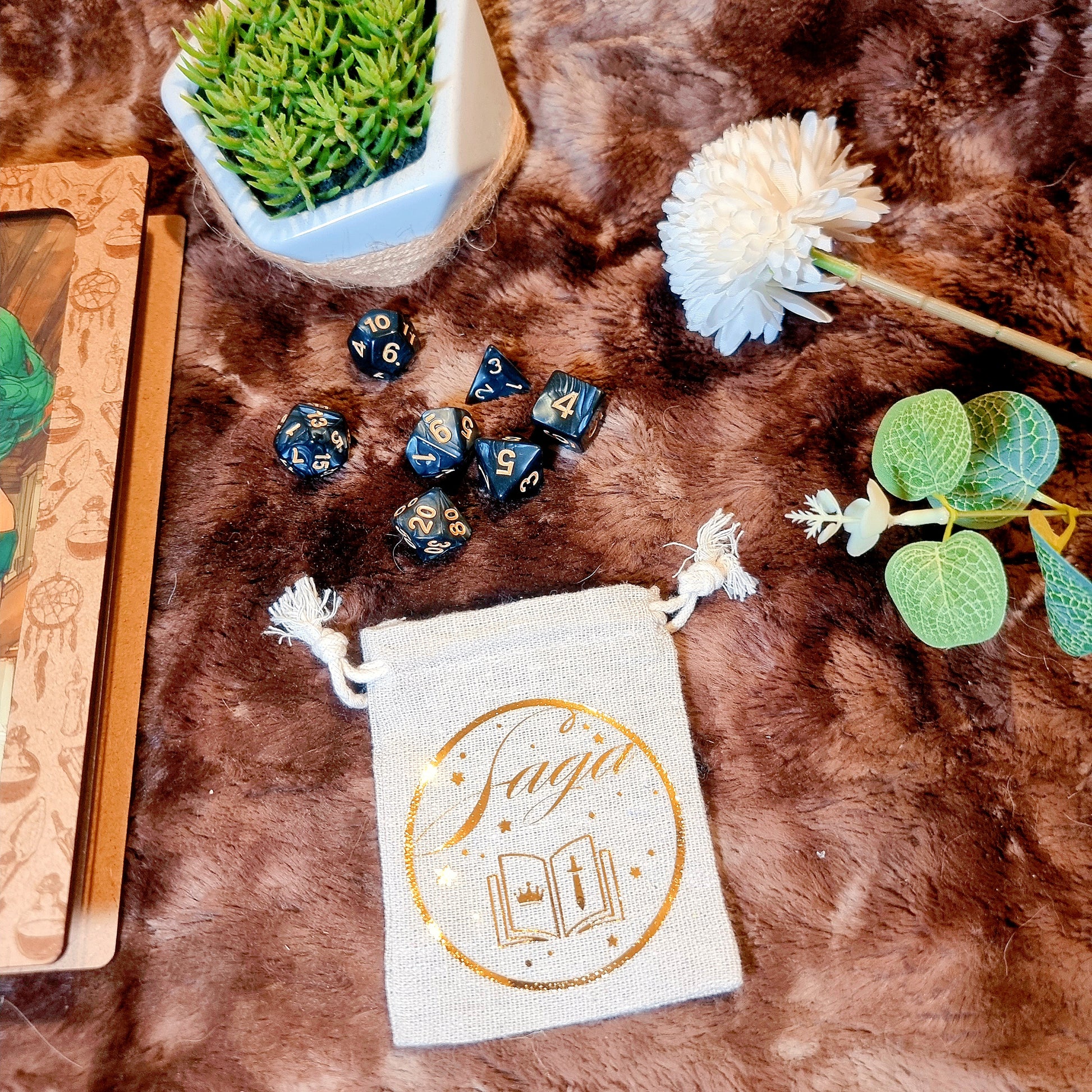 Plongez dans l'aventure avec notre ensemble de dés de jeu de rôle, accompagné d'un pochon en toile personnalisé pour un voyage de jeu unique. Chaque élément de cet ensemble est conçu avec soin en France pour répondre aux besoins des joueurs passionnés.