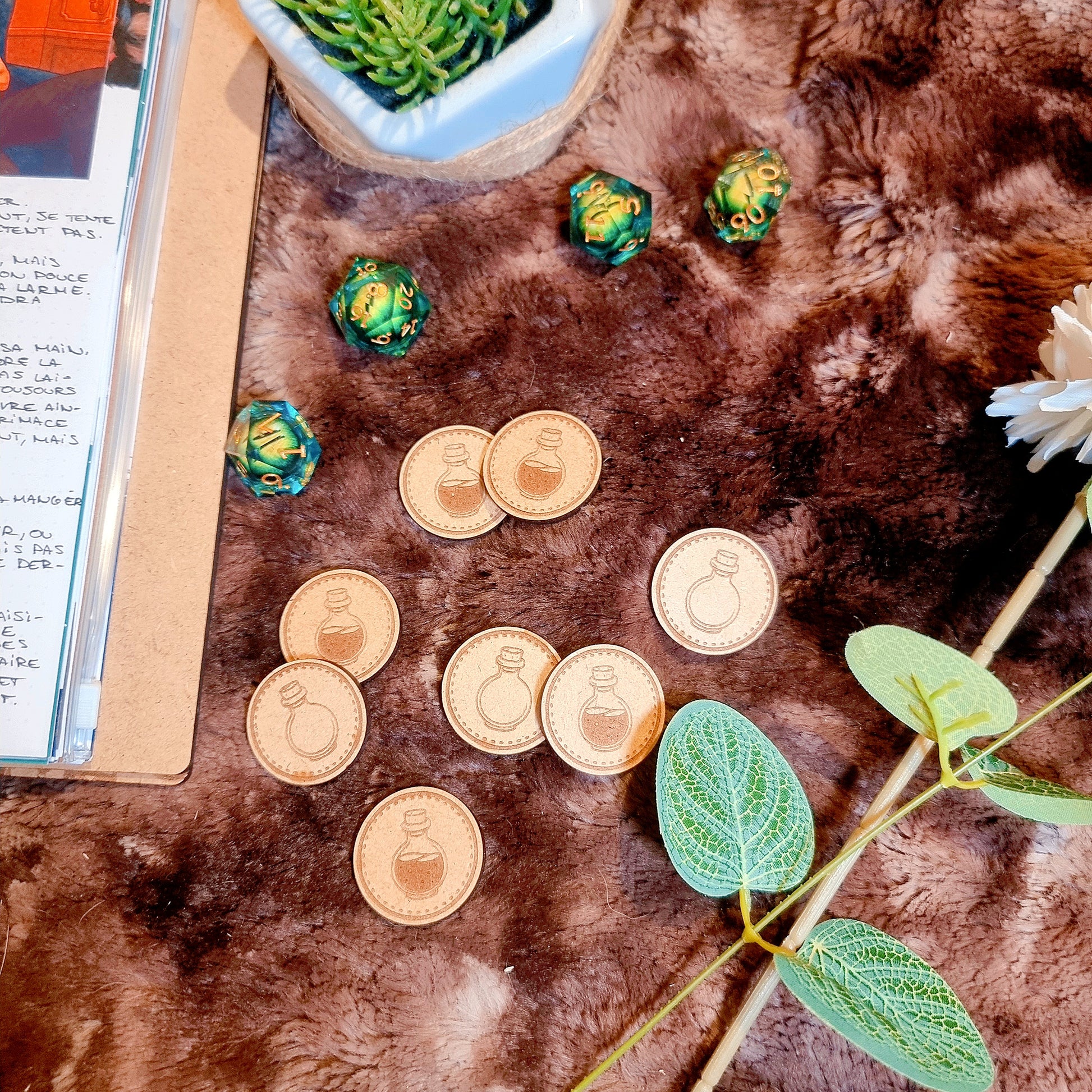 Optimisez vos parties de Saga avec ces jetons en bois artisanaux, conçus pour connaitre vos points de Magie.