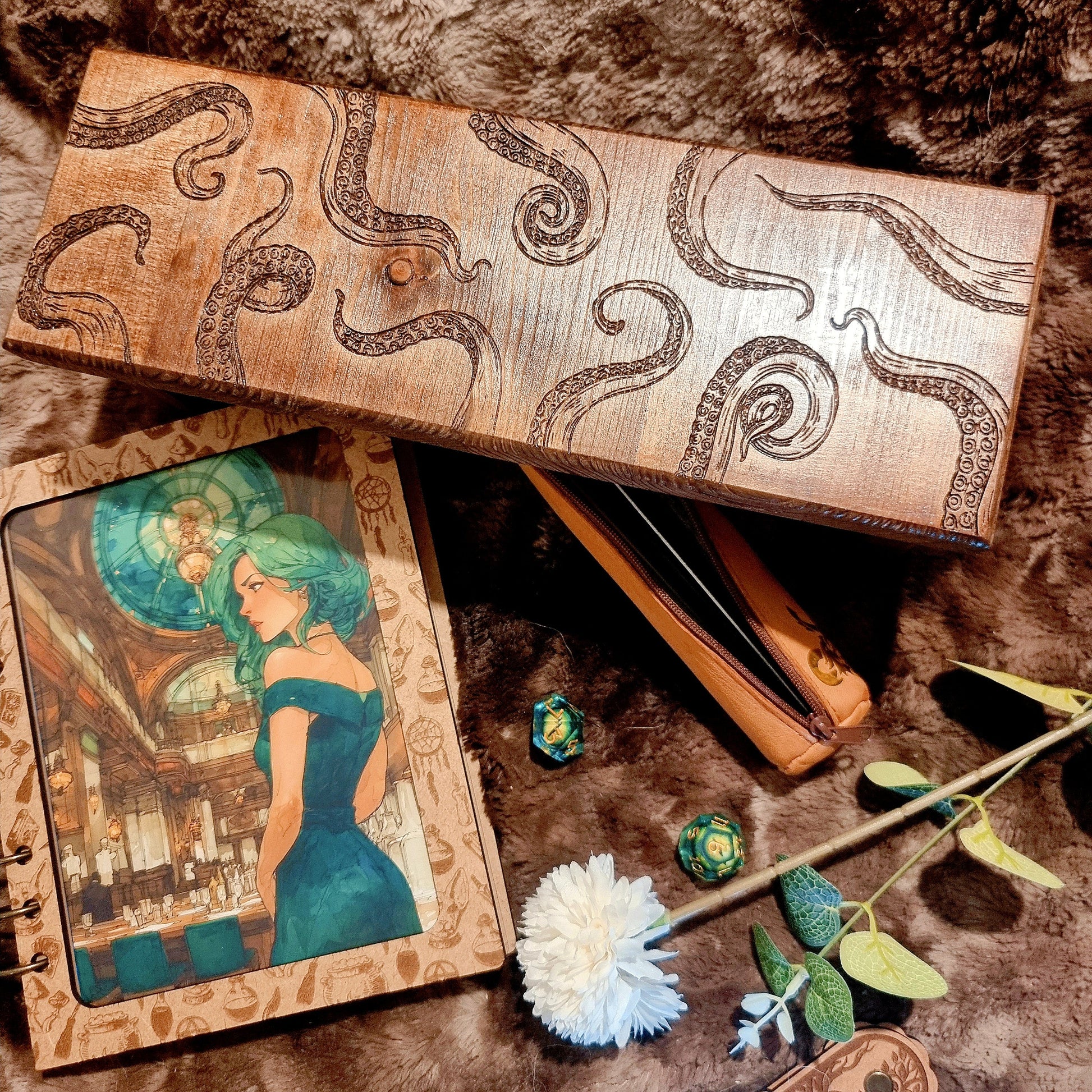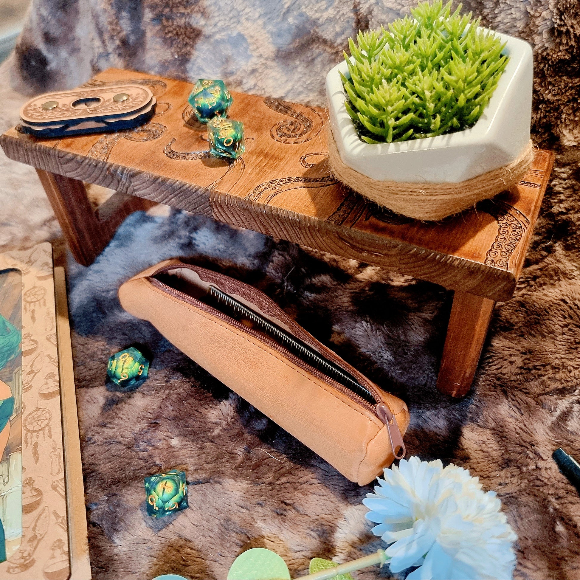 Conçue pour allier praticité et esthétique, elle offre un support stable et élégant pour vos outils de création, vos cartes, vos dés ou votre carnet de jeu.