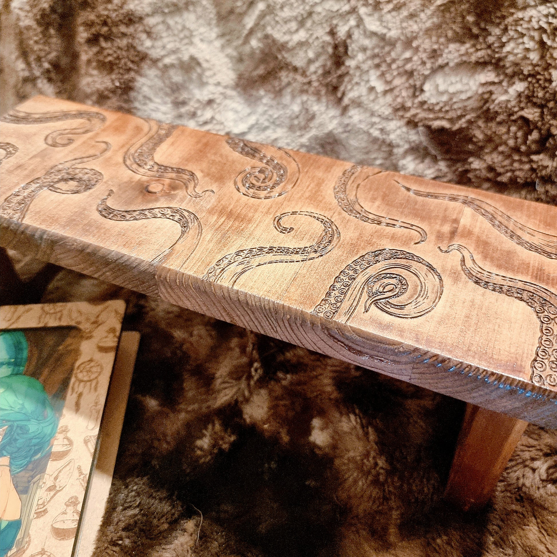 Organisez votre espace de travail avec une touche de fantaisie sombre grâce à cette tablette sur pied ornée de tentacules gravées.